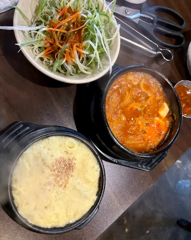 고기를 먹는 중간중간, 김치찌개와 계란찜, 김치말이국수를 곁들이니, 질릴 틈이 없었다. 마치 잘 짜여진 코스 요리처럼, 다양한 맛들을 번갈아 맛볼 수 있었다. 특히, 김치말이국수는 고기의 느끼함을 잡아주는 역할을 톡톡히 했다.