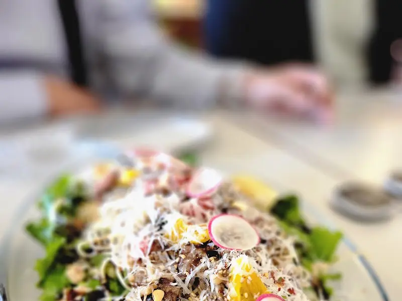 잠시 후, 샐러드가 먼저 나왔다. 신선한 채소 위에 리코타 치즈, 고구마, 견과류 등이 듬뿍 올려져 있었다. 샐러드 위에는 슈레드 치즈가 눈처럼 소복이 쌓여 있었고, 얇게 슬라이스된 라디치오가 포인트로 올라가 있었다. 드레싱은 상큼하면서도 고소한 맛이 어우러져 샐러드의 풍미를 한층 끌어올렸다. 입안 가득 퍼지는 신선함이 입맛을 돋우기에 충분했다.