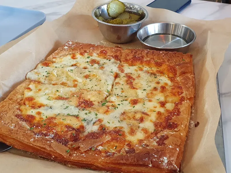 콰트로 포르마지오 피자: 4가지 종류의 치즈가 듬뿍 올라간 피자입니다. 가격은 20,000원. 고르곤졸라, 모짜렐라, 파르미지아노 레지아노, 에멘탈 치즈가 조화롭게 어우러져 깊고 풍부한 치즈의 풍미를 느낄 수 있었습니다. 꿀과 함께 제공되는데, 따뜻한 피자에 꿀을 찍어 먹으니 달콤함과 고소함이 입안 가득 퍼져 정말 맛있었습니다. 도우도 얇고 바삭해서, 4가지 치즈의 풍미를 더욱 잘 느낄 수 있었습니다. 겉은 바삭하고 속은 쫀득한 도우의 식감 또한 훌륭했습니다.
