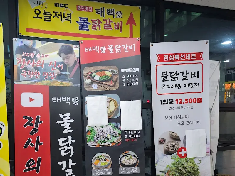 가게 문을 열고 들어서니, 정겨운 분위기가 물씬 풍겼습니다. 테이블마다 놓인 철판 위에는 닭갈비가 익어가는 모습이 보였고, 끓는 소리와 함께 매콤한 향기가 코를 자극했습니다. 벽면에는 태백산의 사진과 함께 물닭갈비에 대한 설명이 적혀 있어, 이곳이 단순한 식당이 아닌 태백의 맛을 그대로 옮겨온 곳임을 짐작하게 했습니다.