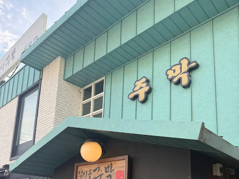 드디어 모습을 드러낸 덕이동주막. 낡은 듯하면서도 정감 있는 외관이 인상적이었다. 푸른색 벽면에 큼지막하게 쓰인 ‘주막’이라는 글자가 왠지 모르게 친근하게 다가왔다. 건물 외벽에는 ‘탤런트 박철호의 덕이동주막’이라는 간판이 붙어 있었다, . 배우의 이름을 내건 만큼, 맛에 대한 기대감이 더욱 커졌다. 문을 열고 들어서자, 예상했던 대로 따뜻하고 편안한 분위기가 나를 맞이했다. 나무로 된 테이블과 의자, 은은한 조명이 어우러져 마치 시골집에 온 듯한 느낌이었다.