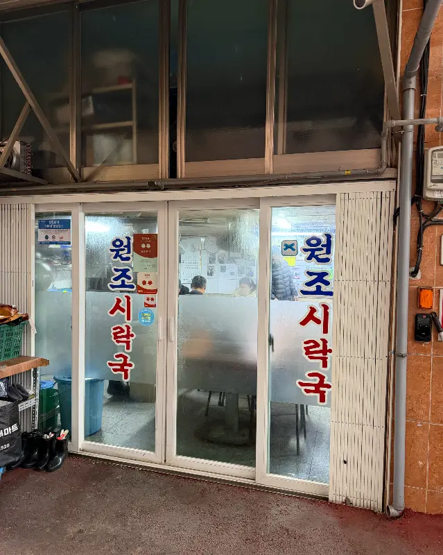 원조시락국집, 간판부터가 범상치 않아. 세월의 흔적이 고스란히 느껴지는 외관에서부터 ‘찐’ 맛집의 포스가 느껴졌지. 문을 열고 들어서는 순간, 마치 다른 세계로 빨려 들어가는 듯한 기분이었어.