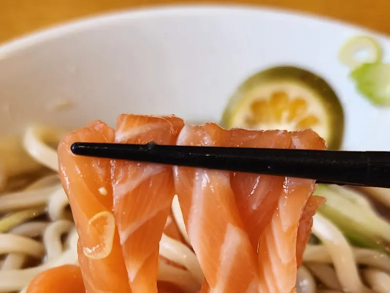 또한, 갓지동에서는 신선한 연어를 맛볼 수 있다는 점도 놓칠 수 없다. 특히 연어와 우동의 조합은 다소 생소하지만, 갓지동에서는 냉우동 베이스의 국물과 신선한 연어가 환상적인 조화를 이룬다고 한다. 에서처럼, 젓가락으로 집어 올린 연어의 윤기 있는 모습은 신선함을 그대로 보여준다. 연어 특유의 고소한 풍미와 쫄깃한 우동 면발의 조화는 상상만으로도 군침이 돈다.