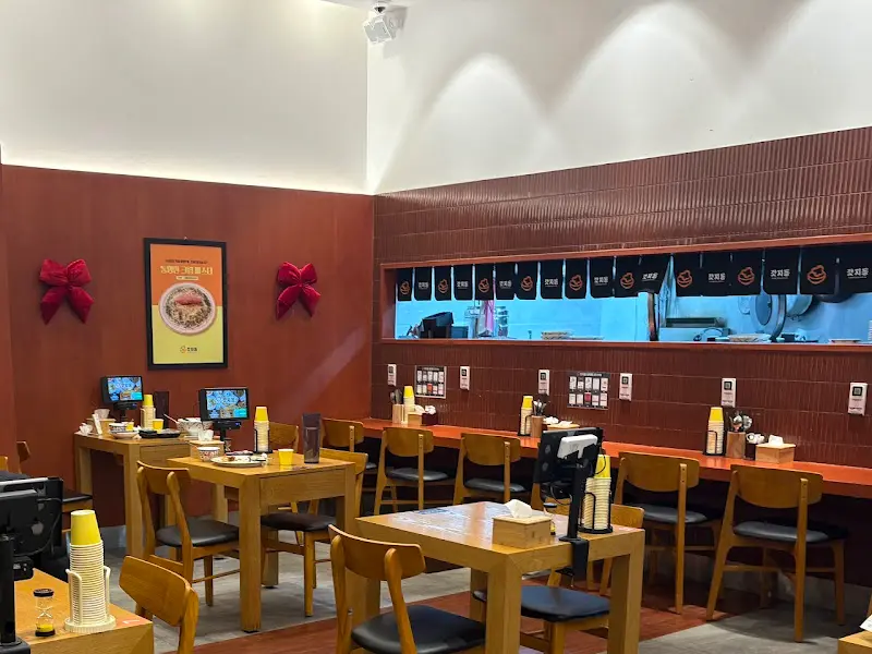매장 안은 생각보다 훨씬 넓고 쾌적했다. 따뜻한 색감의 조명과 깔끔한 인테리어가 편안한 분위기를 자아냈다. 혼자 방문했음에도 전혀 어색하지 않게 바 테이블이 마련되어 있는 점이 마음에 들었다. 물론, 4인 테이블도 넉넉하게 준비되어 있어 데이트나 모임 장소로도 손색없어 보였다. 실제로 혼밥을 즐기러 온 듯한 손님부터, 친구들과 담소를 나누며 식사하는 손님들까지 다양한 모습이 눈에 띄었다. 에서 보이는 홀의 전경처럼, 나무 테이블과 의자는 편안함을 더했고, 벽면에 걸린 그림들은 공간에 생기를 불어넣었다. 갓지동은 분명 맛뿐만 아니라 분위기까지 사로잡는 곳이라는 확신이 들었다.