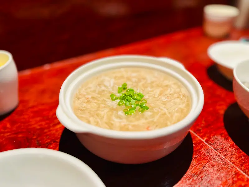 가장 먼저 나온 건 게살스프였어. 뽀얀 스프 위로 송송 썰린 파가 살짝 올라가 있는 모습이 보기만 해도 군침이 돌았지. 한 입 맛보니, 부드러운 게살의 풍미가 입안 가득 퍼져 나갔어. 뜨끈한 온도가 속을 부드럽게 달래주는 느낌이 정말 좋았어. 간도 딱 맞아서, 본격적인 식사를 시작하기 전에 입맛을 돋우기에 완벽했지. 마치 따뜻한 위로를 받는 듯한 기분이었어.