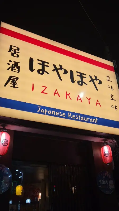 가게 앞에 도착하니, 멀리서부터 은은한 조명이 새어 나오는 게 완전 내 스타일. 큼지막하게 ‘居酒屋 ほやほや IZAKAYA Japanese Restaurant’라고 적힌 간판이 일본 감성을 제대로 자극하더라. 마치 일본 여행 온 듯한 기분이랄까? 붉은색 등이 양쪽에 달려있는 입구부터가 심상치 않았어. 문을 열고 들어서는 순간, “아, 잘 찾아왔다” 싶었지.