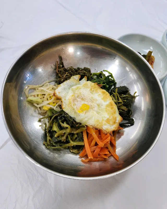 나물 양념이 과하게 진하지 않아 재료 본연의 맛을 제대로 느낄 수 있다는 점이 가장 큰 매력이다. 이미지에서도 확인할 수 있듯이, 갓 지은 따뜻한 밥과 신선한 채소, 그리고 고소한 참기름의 조화는, 단순한 비빔밥을 넘어선 완벽한 한 끼 식사였다.