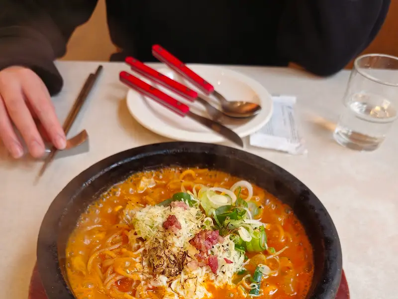 젓가락으로 휘휘 저어서 면이랑 대창이랑 같이 먹었는데, 진짜 환상의 조합이더라! 쫄깃한 면발에 숯불 향이 은은하게 나는 대창이 어우러지는데, 느끼할 거라는 생각은 전혀 안 들었어. 오히려 고소하고 짭짤한 맛이 입안 가득 퍼지면서 완전 중독성 있더라구. 소스도 진짜 맛있었어. 살짝 매콤하면서도 감칠맛이 돌아서 계속 숟가락으로 퍼먹게 되는 맛. 돌솥에 담겨 있어서 그런지, 다 먹을 때까지 따뜻하게 즐길 수 있다는 점도 너무 좋았어.