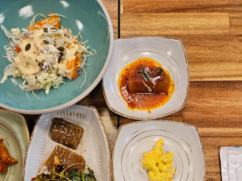 자리에 앉자마자, 나는 ‘참게+메기 매운탕’과 ‘미꾸라지 튀김’을 주문했다. 이 조합은 단순한 메뉴 선택이 아닌, 과학적 탐구의 시작을 알리는 신호탄이었다. 잠시 후, 정갈하게 차려진 밑반찬들이 등장했다. 샐러드, 묵, 겉절이 등 하나하나 맛깔스러운 곁들임들은, 메인 요리의 풍미를 더욱 끌어올리기 위한 정교한 조연 역할을 톡톡히 해냈다.