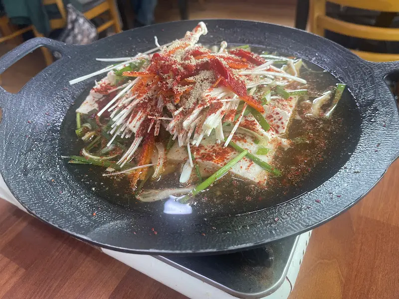 점심시간이 조금 지나서였을까, 다행히 기다림 없이 자리에 앉을 수 있었다. 메뉴판을 훑어보며 고민에 빠졌다. 두부구이와 두부전골, 막국수까지… 하나하나 놓치고 싶지 않은 메뉴들. 특히 두부전골은 포기할 수 없었다. 맑은 육수에서 우러나오는 깊은 맛, 상상만으로도 입안에 침이 고였다. 결국, 두부전골을 선택하고, 잠시 후 따뜻한 김을 뿜어내는 전골이 눈앞에 놓였다.
