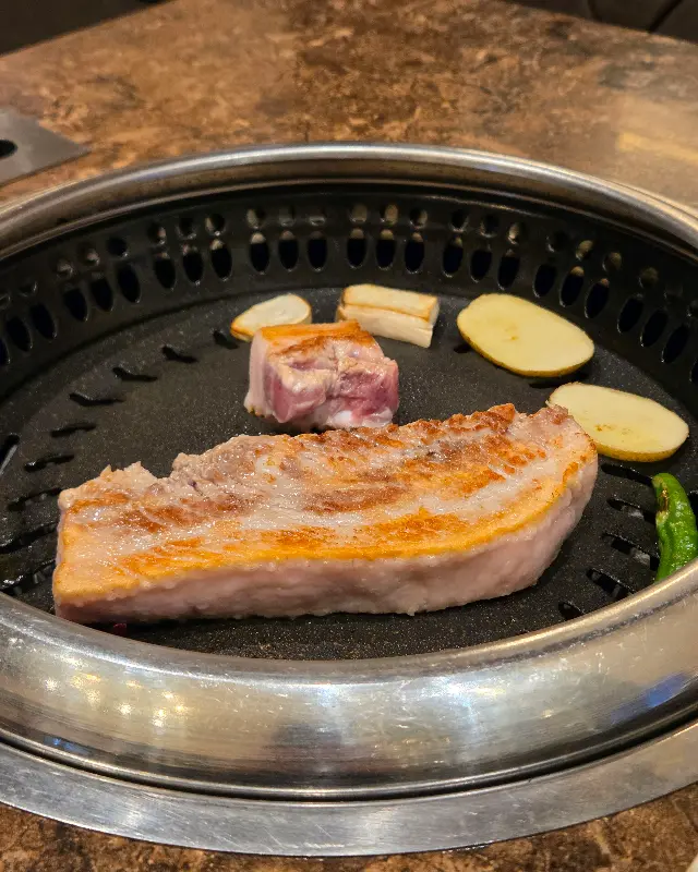 제일 먼저 삼겹살을 한 점 집어서 입에 넣었어. 아이고, 이 맛 좀 봐라! 육즙이 입안에서 팡팡 터지면서, 고소한 풍미가 확 퍼지는 게 정말 예술이더라. 쫄깃쫄깃한 식감도 너무 좋고, 돼지 특유의 잡내도 전혀 안 나고, 정말 깔끔한 맛이었어. 괜히 사람들이 “고기 질이 좋다”고 하는 게 아니었어.