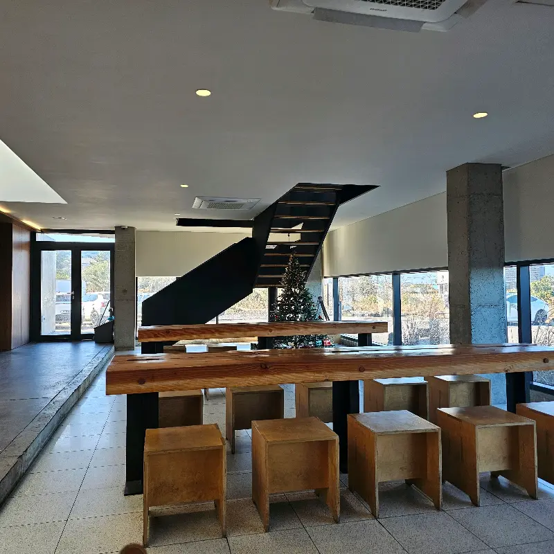 함덕 해변 바로 앞에 떡하니 자리 잡은 무거버거. 멀리서 봐도 눈에 띄는 건물이었어. 주차장도 널찍해서 편하게 주차하고 안으로 들어갔지. 문을 열자마자 탁 트인 공간에 감탄사가 절로 나왔어. 우드톤 인테리어에 은은한 조명, 그리고 무엇보다 시선을 사로잡는 건 통유리창 너머로 펼쳐지는 함덕 바다 뷰! 진짜 그림 같다는 말이 딱 어울리는 풍경이었어.