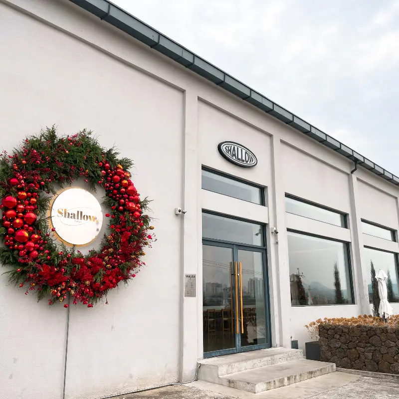 카페 외관은 깔끔한 흰색 벽돌로 이루어져 있었고, 붉은색 열매로 장식된 크리스마스 리스가 걸려있었다 . 샬로우커피라는 간판은 마치 연구소의 현판처럼 묵직하게 느껴졌다. 문을 열고 들어서는 순간, 나는 단순한 손님이 아닌, 맛의 비밀을 탐구하는 연구자가 된 듯한 기분이었다.