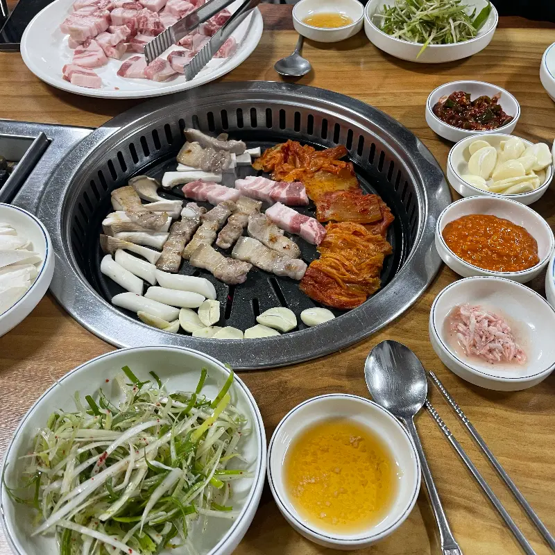 이 집, 고기 질 진짜 좋다. 씹을수록 고소하고, 육즙이 좔좔 흐르는 게, 좋은 고기 쓰는 게 분명해. 괜히 함양 사람들이 인정하는 맛집이 아니라니까. 를 보면 알겠지만, 테이블 가득 차려진 밑반찬과 신선한 삼겹살의 조화가 예술이야. 마치 잘 짜여진 힙합 프로듀싱처럼, 모든 요소가 완벽하게 어우러져 최고의 맛을 만들어내지.