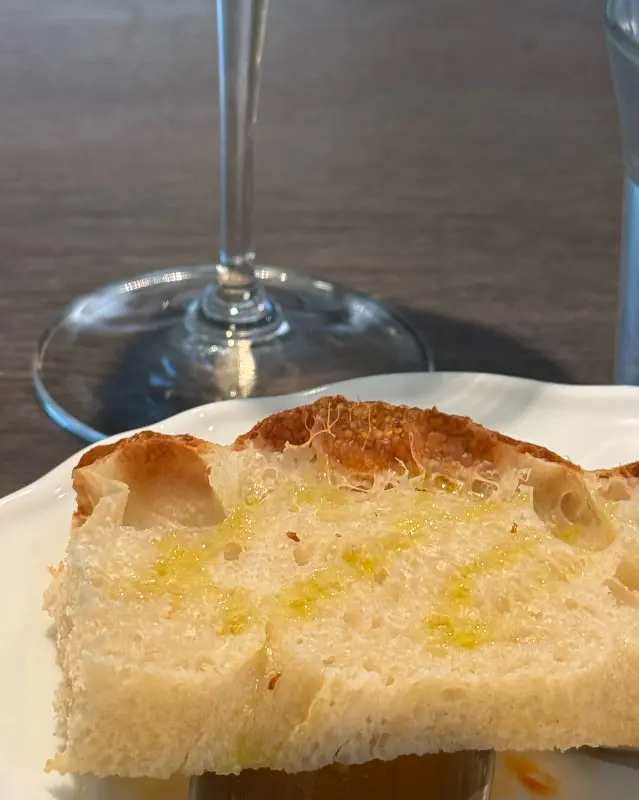 자리에 앉자마자 따끈한 식전빵이 나왔는데, 겉은 바삭하고 속은 촉촉한 게 진짜 꿀맛! 올리브 오일에 콕 찍어 먹으니 입맛이 확 돋는 거 있지. 사진에서 보이는 것처럼 빵 겉면이 노릇노릇하게 구워져서, 보기만 해도 군침이 싹 돌았어. 빵 자체도 맛있었지만, 함께 나온 올리브 오일이 진짜 향긋하고 신선해서 풍미를 더해줬어. 역시 맛집은 식전빵부터 다르다니까.