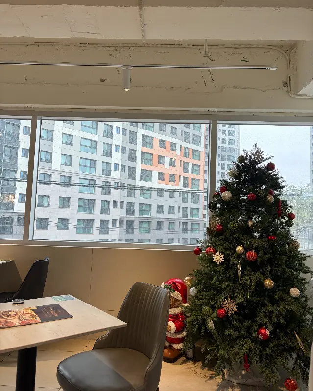 발걸음을 옮겨 도착한 브런치빈 구디점은 생각보다 훨씬 넓고 쾌적한 공간이었다. 은은하게 퍼지는 꽃집 향기가 마음을 편안하게 만들어 주었고, 테이블 간 간격도 넉넉해서 여유로운 식사를 즐길 수 있을 것 같았다. 혼자 방문했음에도 전혀 부담스럽지 않은 분위기가 마음에 들었다. 매장 한 켠에는 크리스마스트리가 벌써부터 놓여 있어 연말 분위기를 물씬 풍겼다.