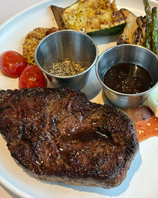 스테이크는 완벽하게 구워져 나왔다. 겉은 갈색 크러스트가 형성되어 있었고, 속은 촉촉한 붉은색을 띠고 있었다. 굽기 정도는 미디엄 레어로, 내가 가장 선호하는 스타일이었다. 나이프로 스테이크를 자르는 순간, 육즙이 흘러나오는 것을 확인할 수 있었다. 스테이크를 한 입 맛보는 순간, 입안 가득 퍼지는 풍부한 육즙과 깊은 풍미에 감탄했다. 160도에서 진행된 마이야르 반응 덕분에, 스테이크 겉면은 바삭했고 속은 촉촉했다. 곁들여진 가니쉬는 스테이크의 맛을 더욱 풍성하게 만들어 주었다. 구운 야채는 단맛을 극대화했고, 매쉬드 포테이토는 부드러운 식감을 더했다. 스테이크 소스는 감칠맛을 더했고, 스테이크의 풍미를 한층 끌어올렸다. 마치 정교하게 설계된 실험처럼, 모든 요소들이 완벽하게 조화를 이루었다.