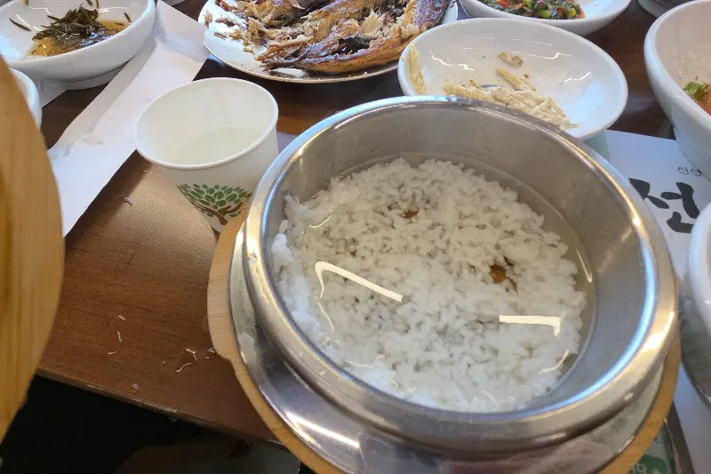 가장 먼저 솥밥의 뚜껑을 열었습니다. 윤기가 좌르르 흐르는 밥알에서는 은은한 향이 풍겨 나왔고, 찰진 식감은 입안을 즐겁게 했습니다. 좋은 쌀을 사용하여 정성껏 지었다는 솥밥은, 그 자체로도 훌륭한 요리였습니다. 밥을 덜어낸 후에는 뜨거운 물을 부어 누룽지를 만들어 먹었는데, 구수한 풍미가 입안 가득 퍼지며 깊은 여운을 남겼습니다.