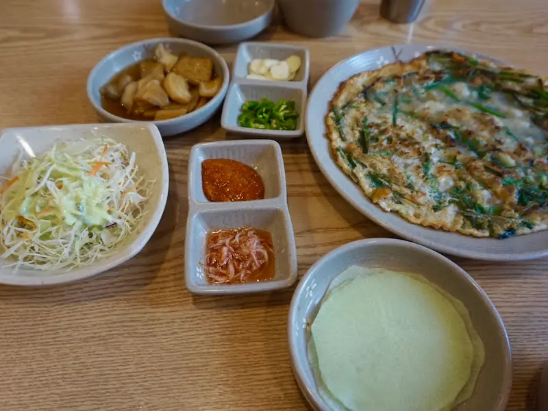사진에서 보이는 것처럼, 밑반찬도 하나하나 정성이 느껴졌다. 특히 따뜻하게 부쳐져 나온 전은 겉은 바삭하고 속은 촉촉해서, 입맛을 돋우는 데 제격이었다. 예전에는 전을 서비스로 제공했다고 하는데, 이제는 추가 주문을 해야 한다고 하니 조금 아쉬운 마음이 들었다.