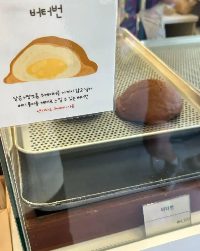가게 문을 열자, 따뜻한 기운과 함께 갓 구운 빵 냄새가 후각을 강렬하게 자극했다. 마치 잘 구워진 토스트에 메이플 시럽을 듬뿍 뿌린 듯한 달콤한 향이랄까. 투명한 쇼케이스 안에는 윤기가 자르르 흐르는 빵들이 저마다의 매력을 뽐내고 있었다. 동글동글 귀여운 모양의 버터번부터, 겉은 바삭하고 속은 촉촉해 보이는 소금빵, 그리고 달콤한 크림이 듬뿍 들어간 크림 모카번까지. 보기만 해도 군침이 절로 도는 비주얼에, 어떤 빵을 골라야 할지 한참을 고민했다.