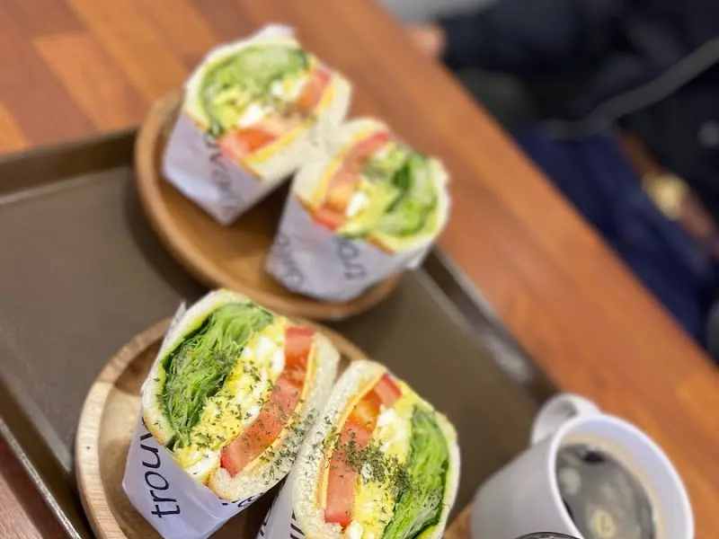 샌드위치를 먹는 동안, 카페 안을 둘러보았다. 천장의 나무 소재는 공간에 따뜻함을 더했고, 은은한 조명은 아늑한 분위기를 연출했다. 커다란 창밖으로는 햇살이 쏟아져 들어왔고, 창가 자리에 앉아 책을 읽는 사람들의 모습은 평화로워 보였다. 나 역시 창가 자리에 앉아 샌드위치를 음미하며 여유로운 시간을 보냈다.