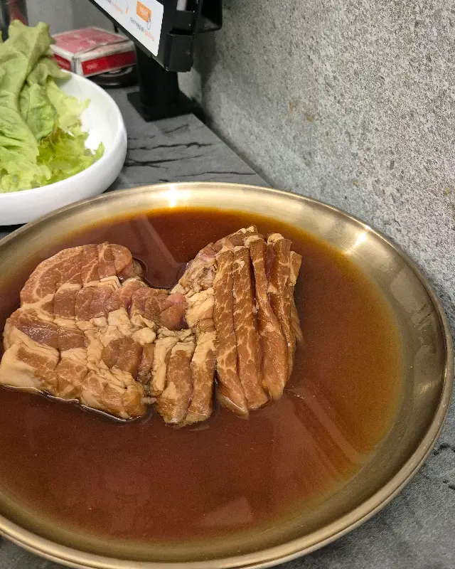 뜨끈한 국물이 생각나 우삼겹 된장찌개를 추가로 주문했다. 뚝배기 안에서 보글보글 끓는 된장찌개는 보기만 해도 속이 풀리는 듯했다. 숟가락으로 크게 한술 떠 맛보니, 깊고 진한 맛이 혀끝을 감쌌다. 특히, 우삼겹이 듬뿍 들어가 있어, 더욱 풍성한 맛을 느낄 수 있었다. 된장찌개와 함께 밥 한 공기를 뚝딱 비우니, 세상 부러울 것이 없었다. 특히, 5만 원 이상 주문 시 된장찌개를 단돈 천 원에 맛볼 수 있다는 점 또한 매력적이었다. 된장찌개 육수를 따로 판매할 정도라고 하니, 그 맛은 더 이상 설명이 필요 없을 듯하다.