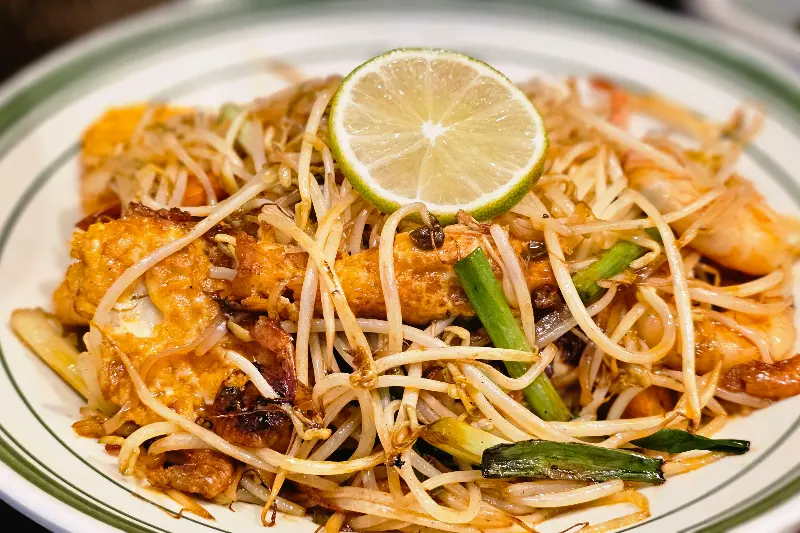곧이어 나온 팟타이 역시 비주얼부터 압도적이었다. 윤기가 자르르 흐르는 면발 위로 통통한 새우와 잘게 부순 땅콩이 듬뿍 올려져 있었고, 싱그러운 라임 한 조각이 팟타이의 정점을 찍었다. 팟타이를 보는 순간, 나도 모르게 침이 꼴깍 넘어갔다.