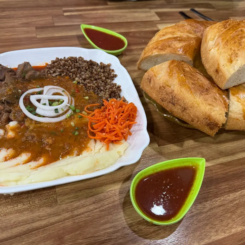 친절한 직원분의 안내를 받아 자리에 앉았다. 테이블은 입식과 좌식, 둘 다 준비되어 있었다. 혼자 온 나는 부담 없이 창가 쪽 2인 테이블에 자리를 잡았다. 벽에는 우즈베키스탄의 풍경 사진들이 걸려 있어, 음식을 기다리는 동안 잠시나마 여행하는 기분을 느낄 수 있었다. 메뉴판을 펼쳐 들었다. 다양한 우즈벡 요리들이 사진과 함께 소개되어 있었는데, названия는 낯설었지만 하나하나 살펴보는 재미가 쏠쏠했다. 양고기, 소고기, 닭고기 등 다양한 육류를 사용한 요리들이 주를 이루고 있었고, 볶음밥과 볶음면, 만두, 꼬치 등 익숙한 듯 새로운 메뉴들이 눈길을 사로잡았다.
