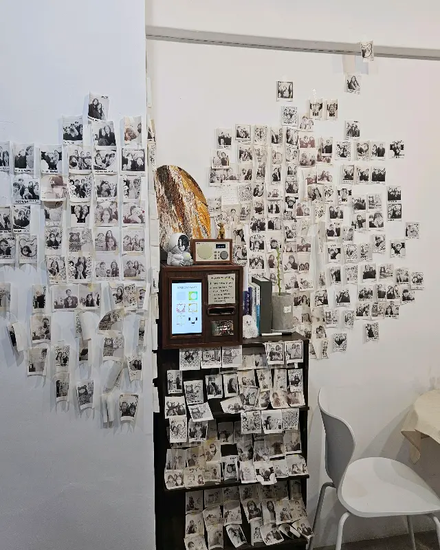 카페 한쪽 벽면에는 방문객들의 폴라로이드 사진이 가득 붙어 있었다. на каждой фотографии запечатлены счастливые лица людей, разделивших здесь радость и улыбки. мимолетное и мимолетное общность