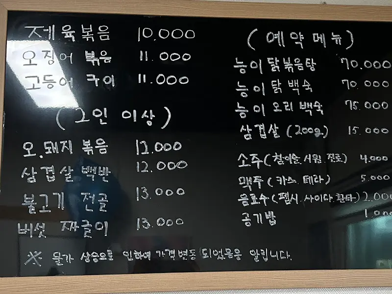 메뉴판을 보니 백반 정식, 제육볶음, 오징어볶음, 생선구이 등 다양한 메뉴가 눈에 띄었다. 가격도 착하다. 혼자 이것저것 시키기 부담스러울 때가 많은데, 여기는 1인 메뉴도 다양해서 좋았다. 뭘 먹을까 고민하다가, 얼큰한 게 당겨서 버섯 짜글이를 주문했다. 왠지 집에서 엄마가 해주는 듯한 푸근한 맛일 것 같았다.