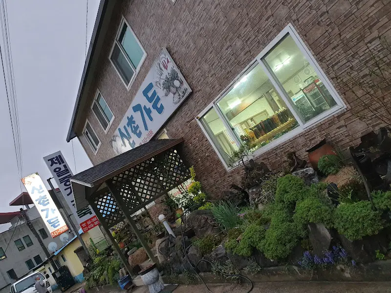 신촌가든은 보은 시내에서 조금 벗어난 한적한 곳에 자리 잡고 있었다. 낡은 듯 정감 있는 외관이 세월의 흔적을 고스란히 담고 있는 듯했다. 가게 앞에는 작은 정원이 꾸며져 있었는데, 푸릇푸릇한 나무들과 알록달록한 꽃들이 소박하면서도 따뜻한 분위기를 자아냈다. 마치 시골 할머니 댁에 놀러 온 듯한 기분. 혼자였지만, 왠지 모르게 마음이 편안해졌다. 를 보면, 가게 외관이 주변 풍경과 어우러져 푸근한 느낌을 준다.