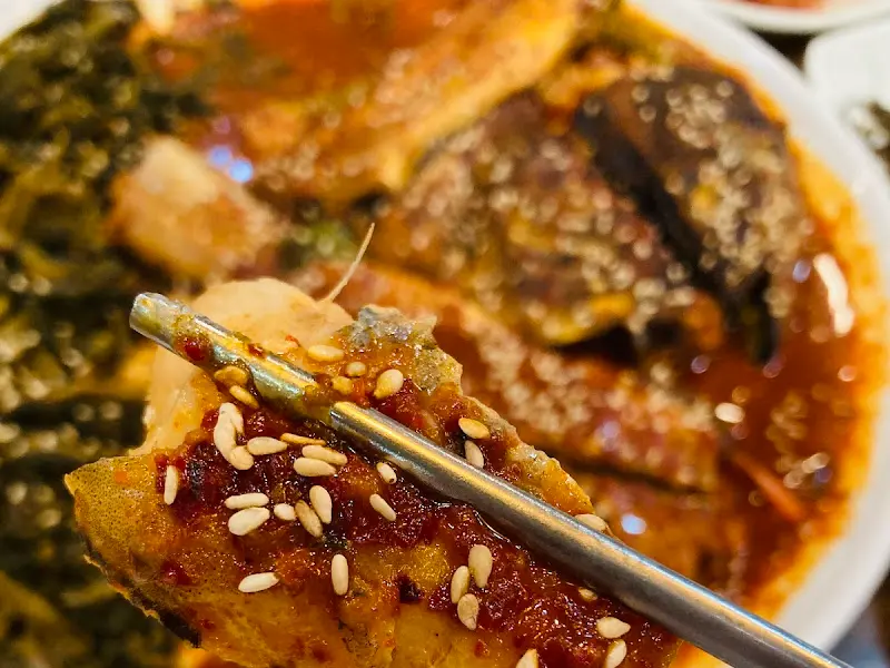 를 보면, 윤기가 좔좔 흐르는 명태조림 위에 넉넉하게 뿌려진 깨가 보인다. 이 깨 덕분에 고소한 풍미가 더해져 더욱 맛있게 즐길 수 있었다. 젓가락으로 명태 살을 집어 올릴 때마다, 그 위에 촘촘하게 박힌 깨들이 시각적인 즐거움까지 선사했다.