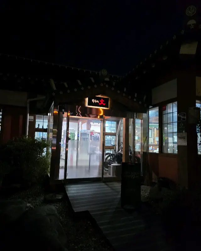 쭈꾸미화는 외관부터 뭔가 특별한 아우라를 풍겼다. 현대적인 감각과 전통적인 멋이 조화롭게 어우러진 모습이랄까? 커다란 기와지붕 아래 통유리로 된 입구가 인상적이었다. 마치 따뜻한 가정집에 초대받는 듯한 느낌. 혼자 왔지만 전혀 어색하지 않았다. 오히려 편안하고 아늑한 분위기가 마음을 사로잡았다.