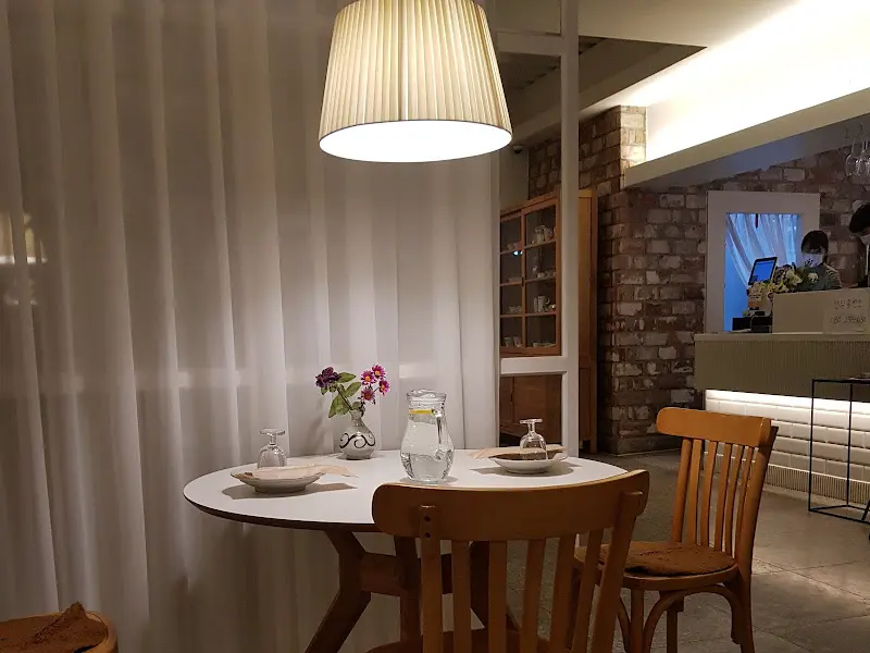 문을 열자마자 따뜻하고 아늑한 분위기가 나를 감쌌다. 은은한 조명 아래, 편안하게 식사할 수 있는 테이블들이 놓여 있었다. 혼자 온 손님을 위한 자리가 마련되어 있는지는 먼저 스캔했는데, 다행히 카운터석은 아니지만, 구석진 자리에 혼자 앉아도 전혀 어색하지 않은 테이블이 눈에 띄었다. 벽면을 가득 채운 은은한 커튼과 빈티지한 가구들이 조화롭게 어우러져 마치 유럽의 작은 레스토랑에 온 듯한 느낌을 받았다. 혼밥 레벨이 만렙인 나조차도 살짝 긴장했는데, 이 분위기라면 걱정 없이 혼밥을 즐길 수 있겠다는 확신이 들었다.