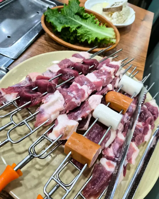 잘 익은 오리고기 한 점을 꼬치에서 빼내어 입안에 넣으니, 육즙이 팡팡 터져 나왔다. 겉은 바삭하고 속은 촉촉한, 완벽한 겉바속촉이었다. 숯불 향이 은은하게 배어 풍미를 더했고, 신선한 오리고기 특유의 고소함이 입안 가득 퍼졌다. 특히, 갓김치와 함께 먹으니 느끼함은 싹 가시고, 깔끔하면서도 깊은 맛이 일품이었다. 깻잎장아찌에 싸 먹어도 향긋한 깻잎 향과 짭짤한 장아찌 맛이 오리고기와 환상적인 조화를 이루었다.