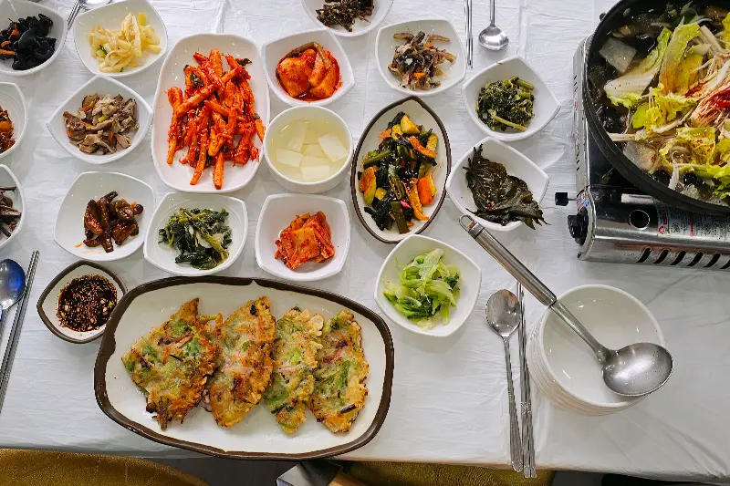 잠시 후, 상다리가 휘어질 듯한 한 상이 차려졌다. 20가지가 넘는 밑반찬들이 옹기종기 모여 있는 모습은 그야말로 장관이었다. 김치, 나물, 볶음, 장아찌 등등… 하나하나 정성이 느껴지는 반찬들이었다.