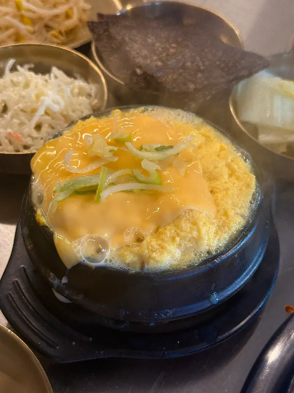 매운맛을 달래기 위해 치즈 계란찜을 추가했다. 부드러운 계란찜 위에 치즈가 듬뿍 올려져 있었다. 따뜻하고 부드러운 계란찜은 매운 쭈꾸미와 환상의 궁합을 자랑했다. 특히, 맵찔이인 나에게는 필수 메뉴였다. 치즈의 고소함과 계란의 부드러움이 매운맛을 중화시켜줘서 쭈꾸미를 더욱 맛있게 즐길 수 있었다.