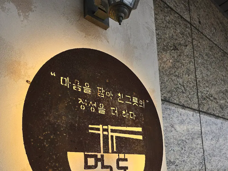넓은 주차장에 차를 대고 건물 입구로 향했어. 모던한 외관이 눈에 띄는 것이, 흔한 국수집 이미지는 아니었지. “마음을 담아 한 그릇의 정성을 더하다”라는 문구가 새겨진 간판이 왠지 모르게 믿음직스러웠어.