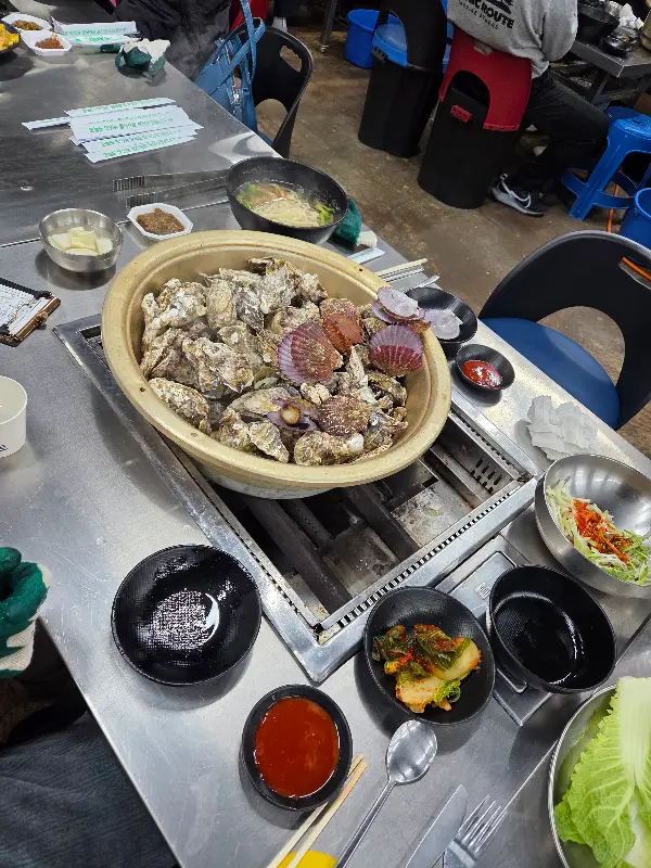 천북 굴단지에 도착하니, 싱싱한 굴을 맛보려는 사람들로 북적였다. 🚗 주차는 다행히 가게 앞에 편하게 할 수 있었다. 혼자 온 나를 반갑게 맞이해주는 사장님의 푸근한 인상에 일단 합격점을 주었다. 넓은 매장 안은 활기가 넘쳤지만, 나는 구석 자리에 자리를 잡고 앉았다. 혼자 왔다고 눈치 주는 사람 하나 없이, 편안한 분위기였다. 좋아, 이 집 뭔가 될 것 같아. 😎