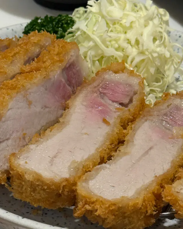 드디어 기다리고 기다리던 히레카츠가 나왔다. 튀김옷은 황금빛으로 바삭하게 튀겨져 있었고, 속은 촉촉한 분홍빛을 띠고 있었다. 곁들여 나온 양배추 샐러드와 돈까스 소스, 그리고 따뜻한 장국이 정갈하게 차려진 모습에 감탄했다. 마치 일본 현지 돈까스 전문점에 온 듯한 느낌이었다.