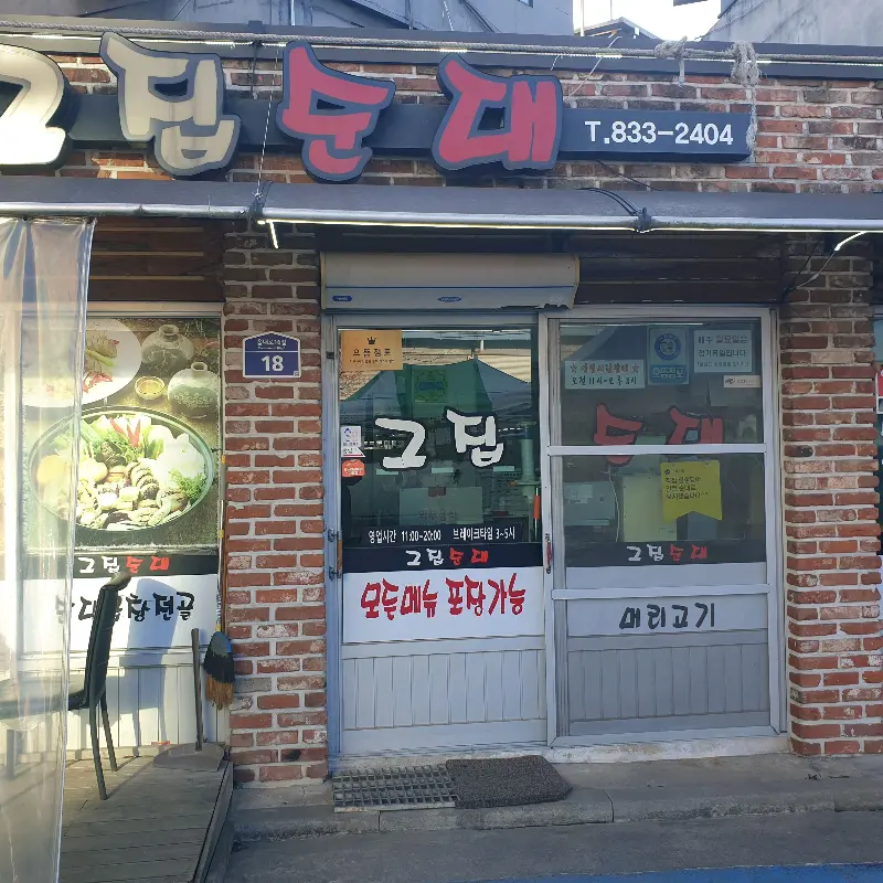 시장통 근처라는 설명처럼, 낡은 간판과 허름한 외관이 정겨운 느낌을 자아냈다. 마치 오랜 친구 집에 놀러 가는 듯한 편안함이랄까. 붉은 벽돌로 지어진 건물에 “그집순대”라고 큼지막하게 쓰여진 간판이 눈에 확 들어왔다. 가게 앞에는 메뉴 사진과 함께 ‘모듬순대 포장됩니다’라는 문구가 적혀 있어, 혼자 사는 사람들에게도 좋은 선택지가 될 수 있겠다는 생각이 들었다. 문을 열고 들어서니, 생각보다 넓은 공간이 펼쳐졌다. 테이블 간 간격도 넉넉해서 혼자 밥 먹는 데 전혀 불편함이 없을 것 같았다.