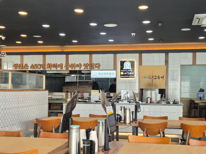 주문을 마치고 잠시 기다리는 동안, 가게 안을 둘러봤다. 오픈형 주방에서는 화덕에서 생선이 구워지는 모습이 살짝 보였다. 화르륵 타오르는 불길 속에서 노릇노릇하게 익어가는 생선을 보니, 저절로 군침이 돌았다. 식당 한켠에는 셀프 코너가 마련되어 있었는데, 다양한 밑반찬들이 깔끔하게 진열되어 있었다. 계란말이, 두부조림, 잡채 등 내가 좋아하는 반찬들이 가득했다. 계란말이는 특히 인기가 많은지, 금세 동이 났다가 다시 채워지곤 했다.
