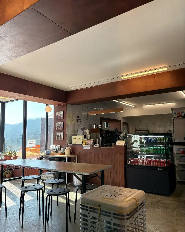 드디어 기다리고 기다리던 버거가 나왔다. 빵 밖으로 삐져나온 채소들이 신선함을 뽐내고 있었다. 흑돼지 패티는 육즙을 가득 머금고 있었다. 케이준 감자튀김도 바삭해 보였다. 쟁반을 들고 창가 자리로 향했다. 지리산을 바라보며 먹는 햄버거라니, 정말 낭만적이었다.