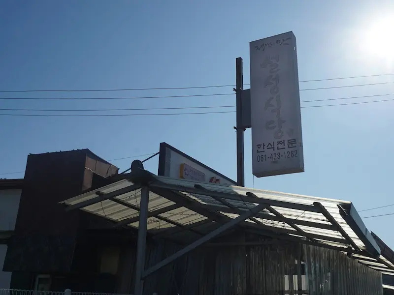 식당 앞에 도착하니 이미 많은 사람들로 북적였다. 주말 점심시간이라 그런지 꽤 긴 웨이팅을 예상해야 할 듯했다. 식당 주변은 온통 연탄불고기 골목이었다. 비슷한 식당들이 옹기종기 모여 있는 모습이 정겨웠다. 그중에서도 단연 눈에 띄는 건 ‘설성식당’이었다. 간판에는 ‘한식전문’이라고 적혀 있었고, 세월의 흔적이 느껴지는 외관에서 맛집의 아우라가 느껴졌다. 파란 하늘 아래 하얀색 간판이 선명하게 빛나고 있었다.