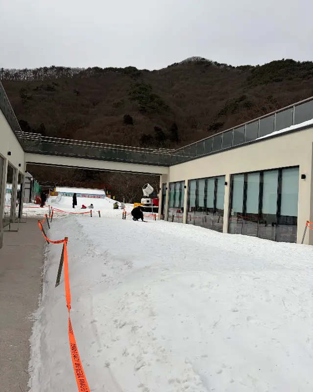눈썰매장은 아직 오픈 전이었지만, 아이들은 벌써부터 신이 나서 눈밭을 뛰어놀고 있었다. 나도 잠시 동심으로 돌아가 눈싸움이라도 하고 싶었지만, 오늘은 혼자만의 여유를 즐기기로 했으니 카페로 발걸음을 옮겼다. 카페 건물은 통유리로 되어 있어 햇살이 따스하게 들어왔다.