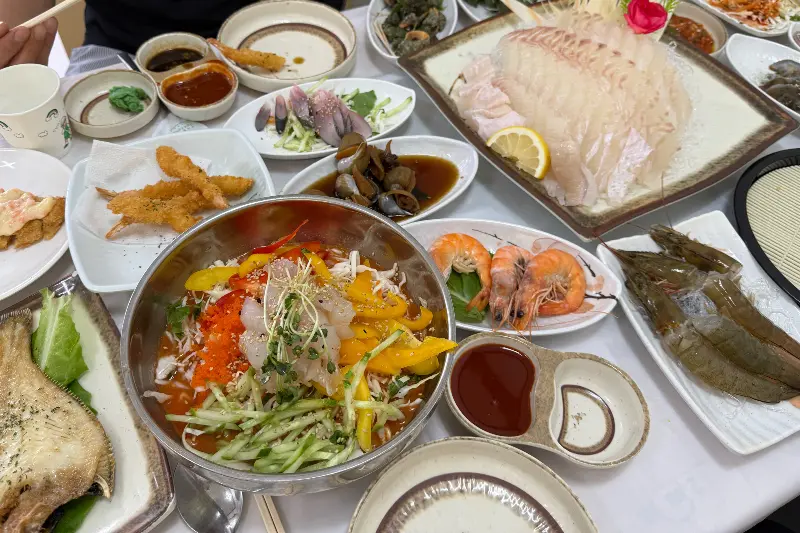 갓 구운 따끈한 생선구이, 바삭한 새우튀김, 매콤한 쭈꾸미 초무침, 신선한 해산물 모듬까지…