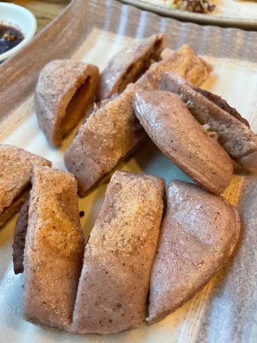 주문을 마치고 기다리는 동안, 갓 구워져 나온 부꾸미가 식탁 위에 놓였다. 겉면은 금빛으로 노릇하게 구워져 있었고, 씹을수록 은은한 단맛과 함께 쫀득한 식감이 입안을 즐겁게 했다. 이것이 정말 시작일 뿐이라는 사실에, 앞으로 펼쳐질 미식의 향연에 대한 기대감은 더욱 커져만 갔다.
