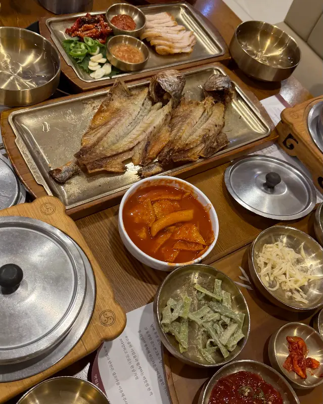 다채로운 나물, 젓갈, 떡볶이, 잡채, 심지어 제육볶음까지… 이 풍성한 구성은 마치 미각의 향연을 예고하는 듯했다.