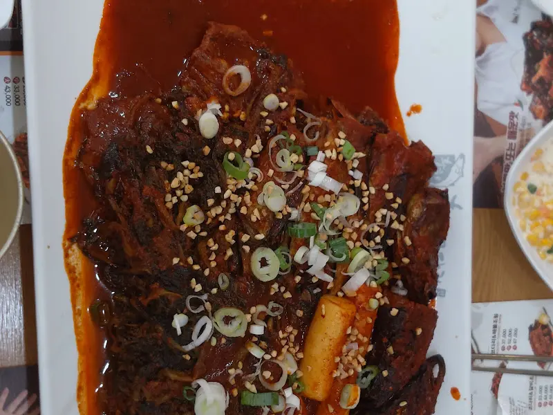 잠시 후, 드디어 기다리고 기다리던 코다리 갈비 조림이 등장했다. 붉은 양념을 머금은 코다리와 갈비, 그리고 푸짐하게 올려진 시래기의 조합은 그야말로 압도적이었다. 코다리에서는 특유의 비린내가 전혀 느껴지지 않았고, 갈비는 160도에서 마이야르 반응이 활발하게 일어난 듯, 표면에 짙은 갈색 크러스트가 형성되어 있었다. 시각적인 아름다움은 미각적인 기대감을 한층 끌어올렸다. 마치 잘 설계된 예술 작품을 감상하는 듯한 기분이었다.