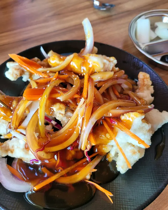 탕수육은 바삭한 튀김옷과 부드러운 돼지고기의 조화가 일품이다. 탕수육 소스는 새콤달콤하면서도 깊은 맛이 느껴져 탕수육의 풍미를 더욱 살려준다. 탕수육은 꼭 찍먹으로 즐기시길!